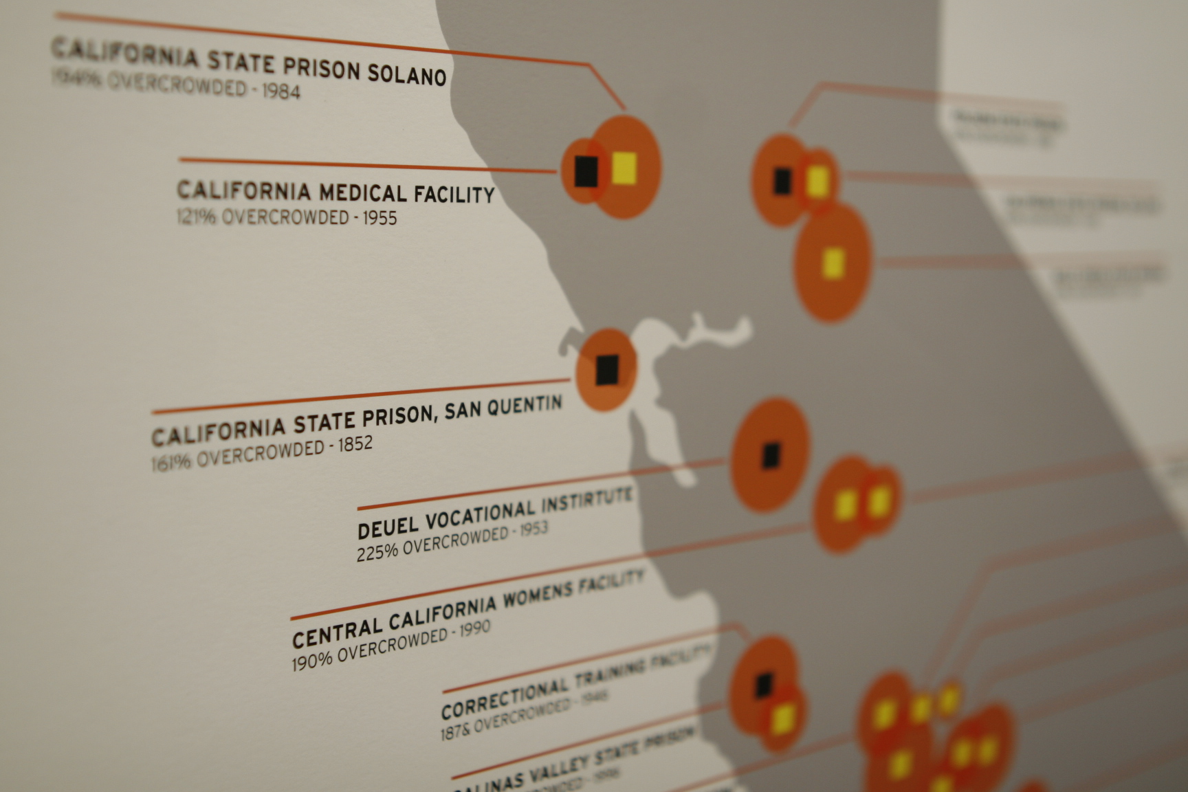 This poster series was designed to educate the viewer on the increase of prisons and inmate population in California from 1980 to 2008.
